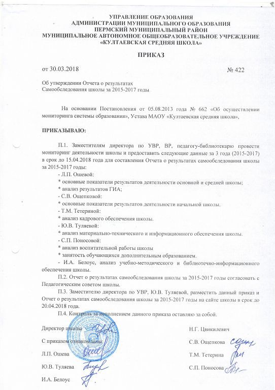 Порядок и основания перевода, отчисления обучающихся МАОУ "Култаевская средняя школа"